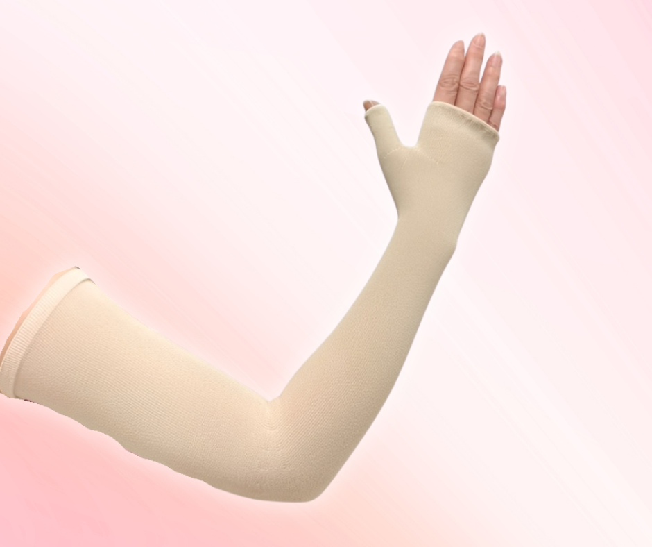 腕のリンパ浮腫にお悩みの方のために、ストッキングで培った技術を応用しました。